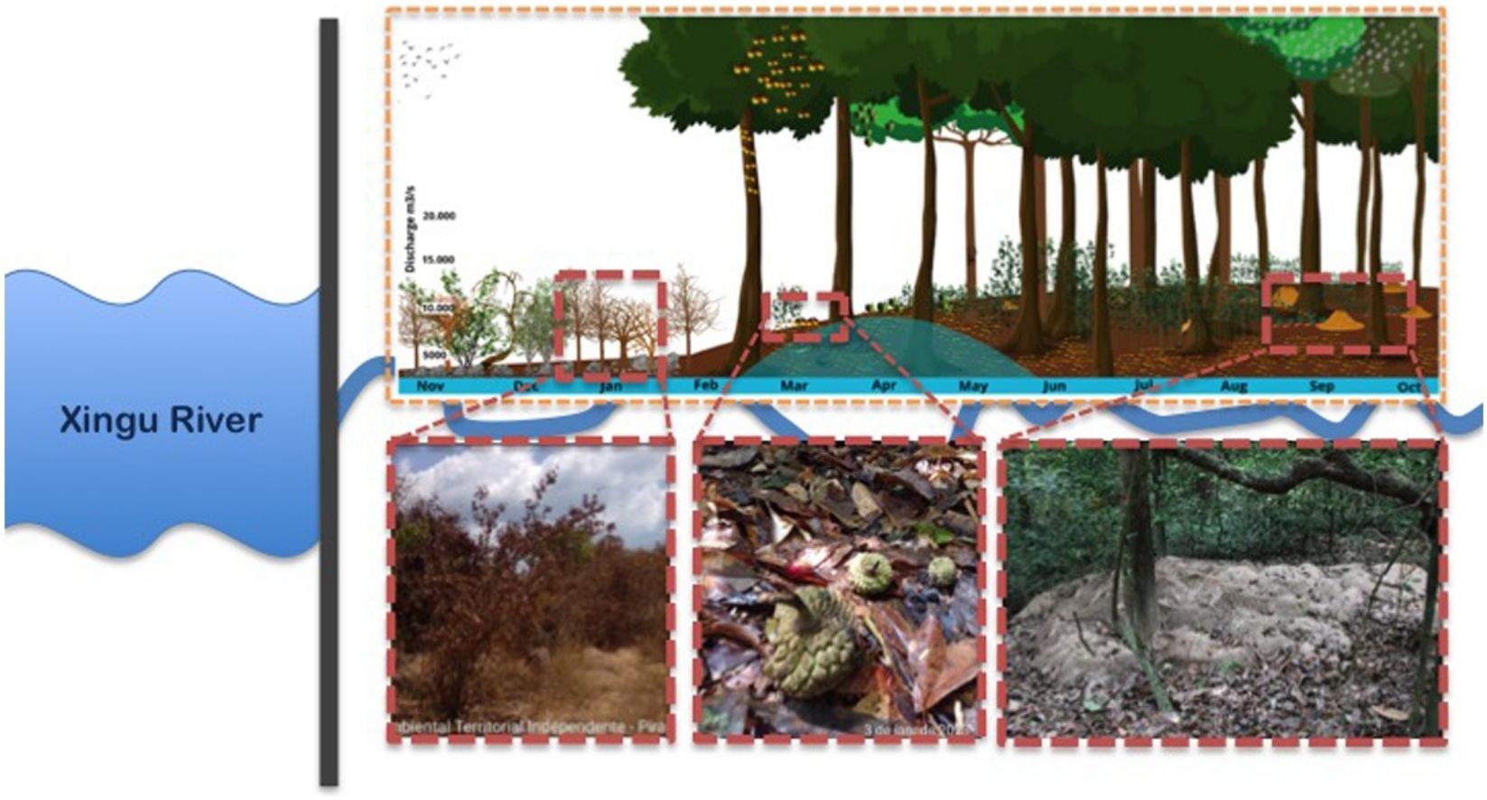 | Box 1. Functioning and disruption of Ecosystem Services of Amazonian River-Floodplain SystemsEcosystem services are the benefits humans gain from natural ecosystems, which arise from the complex interactions between living organisms and their physical environments. The Amazonian river-floodplain is a prime example of such an ecosystem, where seasonal flooding — driven by the annual cycles of rising and falling water levels in the Amazonian rivers (Junk et al., 1989) — plays a crucial role. These dynamics are crucial in providing a range of ecosystem services, from local people subsistence to regional fish production, and thus food sovereignty, biogeochemical cycles, water purification, geomorphic processes, ecosystem productivity, and global climate regulation (Junk et al., 2014).In Amazonian floodplains, rivers seasonally overflow the channel, inundating vast plain areas occupied by flood-adapted biota and triggering several hydro-mediated ecological processes. Moreover, these areas have been inhabited by Indigenous populations and traditional ribeirinhos communities for over the past 10,000 years (Lombardo et al., 2020), providing them with natural resources and being part of their cultural heritage (Junk et al., 2014).However, the construction of hydroelectric dams alters the aquatic and terrestrial habitats and causes the disruption of natural sediment cycles, which are essential for soil fertility and fish productivity (Junk et al., 2014; Wittmann et al., 2022). Furthermore, it affects the quality and availability of water, which are critical for local communities. Cultural and subsistence services, such as fishing, and the collection of fruits and edible plants, are therefore severely impacted by dams, undermining the food security and economic stability of ribeirinhos and Indigenous populations (Schöngart et al., 2021).In the VGX, traditional communities obtain essential resources and develop their cultural identity associated with river-floodplain systems. Currently, these ecosystem services and therefore, livelihoods are threatened by the severe artificial drought caused by the water diversion of the Belo Monte power plant. The drought causes a decline in fish stocks and disrupts the production of fruits. Fish and fruits are primary extractivism sources of nutrition in VGX and are also vital for local economies. The alteration of natural flooding regimes has not only transformed the landscape into an unfamiliar environment but also weakened the deep-rooted connection between communities and their natural surroundings. This disruption undermines traditional practices, cultural identity, and the reliance on ecosystem services that have sustained these populations for millennia. |