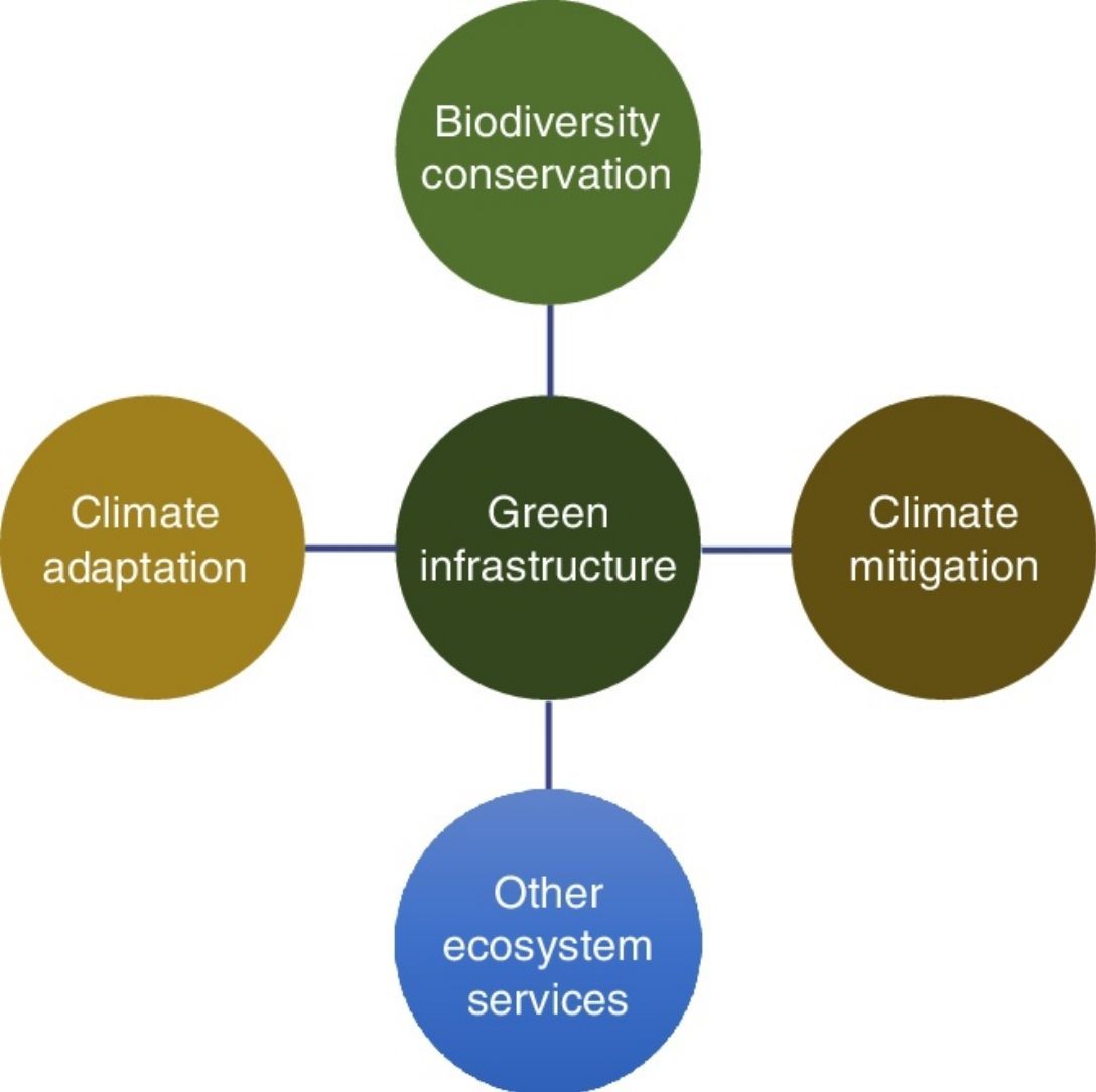 We suggest using the term ‘green infrastructure’, rather than the others, because it is the dominant one in the scientific literature and because it has already been adopted in policies in the United States and Europe. In terms of formal concept, we think that the concept advanced by the European Union is the simplest one for use across sectors and disciplines, although it needs to be reframed to show the explicit inclusion of biodiversity conservation, the mitigation of greenhouse gases and adaptation to climate change as its major objectives (Sussams et al., 2015; Liquete et al., 2015). This is necessary, despite recognising that there will be some redundancies, to avoid misunderstandings among policy-makers and to provide a better match with the goals of the UN Convention on Biological Diversity, the UN Framework Convention on Climate Change and the UN Sustainable Development Goals. Therefore, we suggest that green infrastructure is “a network of natural, semi-natural and restored areas designed and managed at different spatial scales (from local to global), that encompasses all major types of ecosystems (marine, terrestrial and freshwater), and that aims to conserve biodiversity, mitigate emissions of greenhouse gases, enable societal adaptation to climate change, and deliver a wide range of other ecosystem services”.