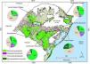 Land-use change in the grassland region according to remote sensingEvaluation of LANDSAT data shows that ca. 60% (104,553km2) of former grassland area in southern Brazil had been destroyed by 2002 (Fig. 3), mostly due to the conversion to arable fields or alien tree plantations. Losses of native grassland have not been uniform in space, but reflect soil properties and topographic constraints. In the Central Western Plateau region, native grasslands were nearly completely transformed into cropland, mostly for soybean. The coastal region has seen high rates of transformation, principally to rice and pine plantations. In the Northeastern Plateau, where soils are shallower, tree plantations and arable fields are the main causes of grassland losses. Here, land-use change has increased considerably within the past decade.