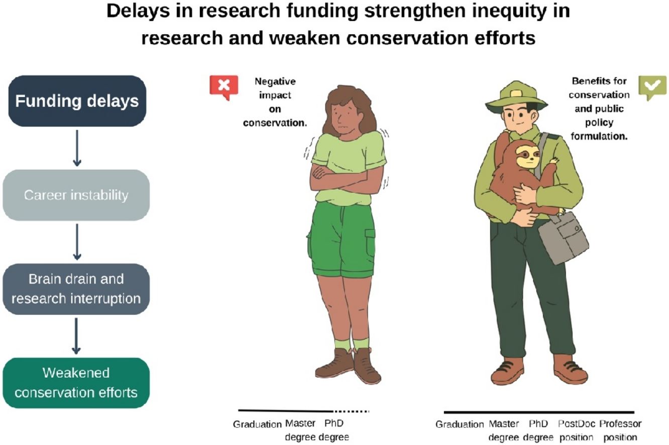 Impacts of funding delays in research and biodiversity conservationFunding delays have widespread consequences, not only affecting individual career trajectories but also the broader scientific community and biodiversity conservation.