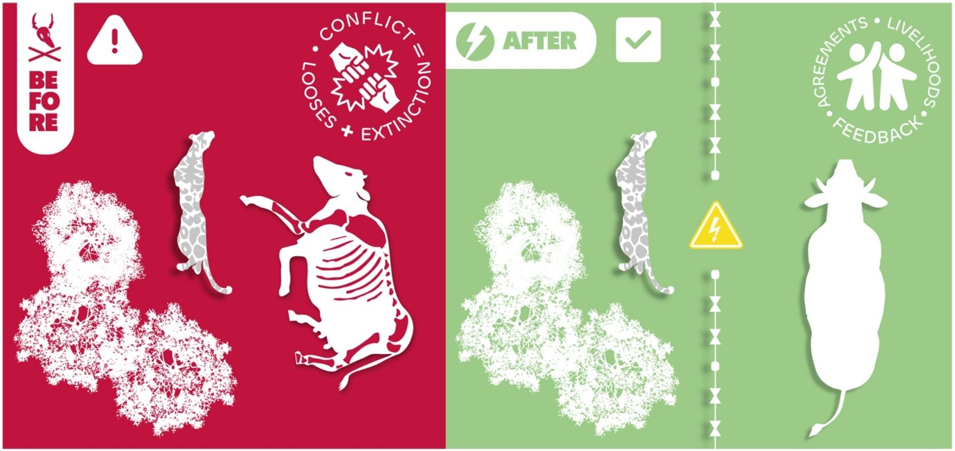 To understand the broader implications of these findings, it is crucial to consider the concept of coexistence itself. Coexistence involves sustainable strategies for sharing human-wildlife landscapes with minimal conflict, integrating conservation with community well-being. It requires an active choice from humans to share resources with wildlife, and denotes cooperation among diverse groups (Dickman, 2010; Zimmermann et al., 2020). Our intervention increased local acceptance of jaguars among ranchers, highlighting the effectiveness of deterrents. As a result, killing jaguars was less viewed as a solution, leading to a greater willingness to share the landscape. While not universal, this trend among ranchers indicates that targeted interventions can promote coexistence with conflict-prone species, aiding their persistence in human-modified landscapes, as evidenced by jaguar presence in most treated ranches and surrounding areas.