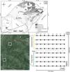 Sampling scheme showing: (A) study region and sampled sites from Luza et al. (2015a), where: 1, 4, 7=Brazilian Highland Grasslands; 2, 5, 8=Serra do Sudeste; 3, 6, 9=Campanha (the numeric order represent the sampling order); (B) distribution of grids on sites; and (C) grid dimensions, where T: transect and P: point on Forest and Grassland habitats, from Luza et al. (2015a). Site Image (2) from Google Earth® (2016).