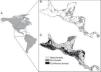 To capture the complete response curves of the target species and avoid working with truncated ecological niches, the modeling area comprised the whole American continent (Fig. 1A). The spatial resolution was 5′ (∼10×10km) and the total number of cells was 590,998. Once the SDMs were built, the results were clipped to the Mesoamerican region (Fig. 1B). The number of cells (10×10km grid cell) used for further analyses in Mesoamerica was 12,245.