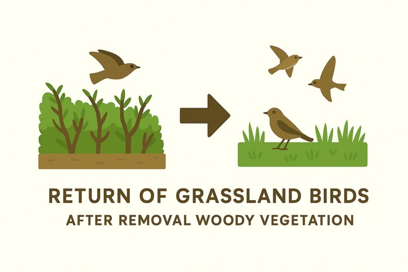 Our results indicate that targeted reductions in woody vegetation can effectively reestablish grassland habitat conditions and promote favorable responses among grassland‐dependent bird species. This pattern aligns with experimental evidence demonstrating that decreases in woody cover improve habitat quality and demographic performance in grassland bird communities. For example, Thompson et al. (2016) reported positive, although delayed, responses to large-scale tree removal, underscoring the importance of temporal scale in post-treatment dynamics. Similarly, experimental removal of tree rows and shelterbelts has led to increased grassland bird densities and nesting activity (Ellison et al., 2013; Tack et al., 2017). Together, these studies highlight that the scale and timing of interventions, as well as the need for recurrent management to prevent rapid regrowth, are key factors driving the magnitude and persistence of avian responses (Coffman et al., 2014; Thompson et al., 2016). In line with this evidence, we observed an initial increase in grassland species richness and activity immediately after removal, followed by a decline associated with accelerated shrub regeneration and the absence of additional management actions.